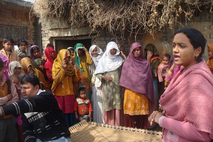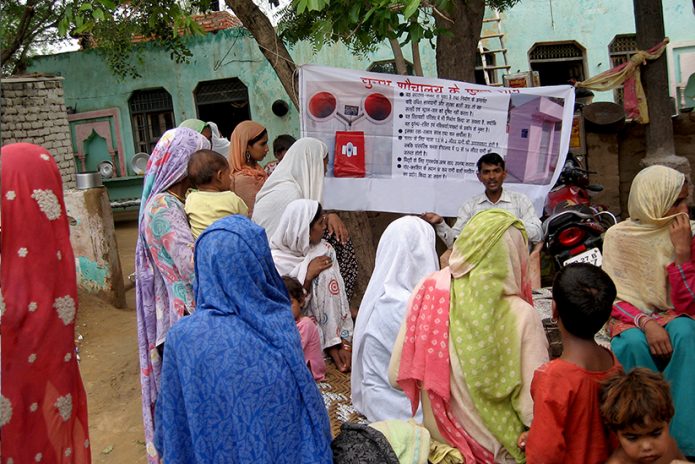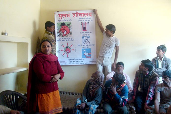 After the completion of construction of individual household toilets, we train beneficiaries on how to use, clean and maintain the toilets. We run door to door campaign and organize community baithkas (meetings) to disseminate our ideas and views efficiently. General masses are more receptive to the visuals. So, we arrange poster pamphlets and audio-visuals in our campaigns. We organize informal meetings and invite men, women and grown-up children for baithaks (meetings) to discuss issues on health, hygiene, water, sanitation facilities or any other health issues.