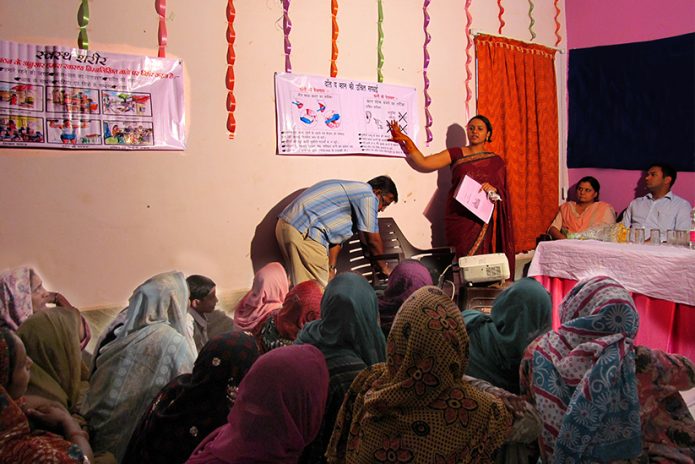 ASHA workers also coordinate with gram panchayats in developing the village health plan. They also coordinate with the anganwadi workers to complete the village health register. Working with ASHA and Anganwadi workers enable us to expand and enhance their capabilities