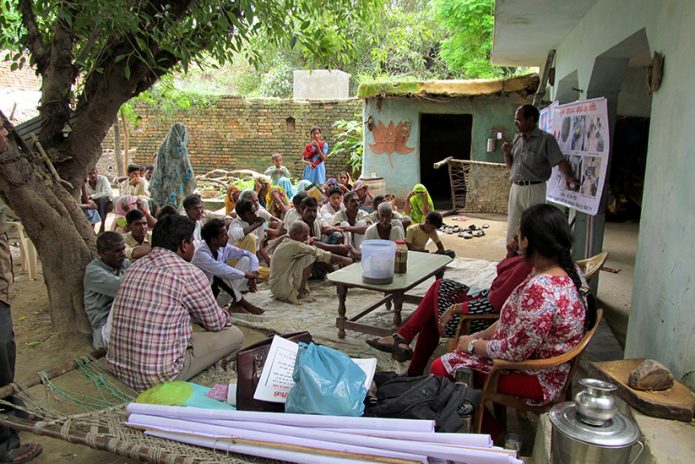 We organise Pre-Learning Assessment (PLAs) to learn about the demography and interact with the villagers. We motivate them to learn about various government schemes and entitlements and how to access them.