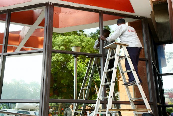 - Dusting of all high rise walls, cobweb removing etc. through various cleaning tools available in the glass cleaning kit.