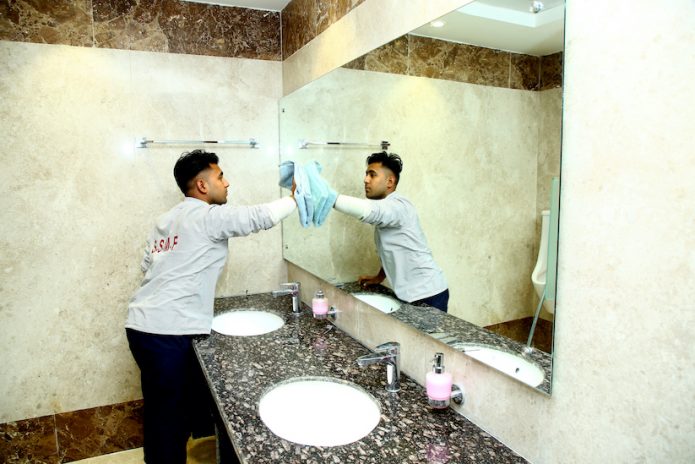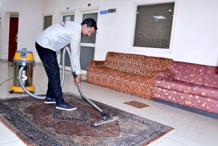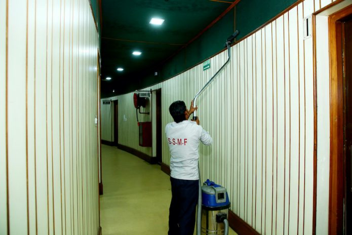 - Mopping of all floor areas through Dust Control Mop and dusting of all furniture, doors, computers, beds etc. through damp duster, using disinfectants.